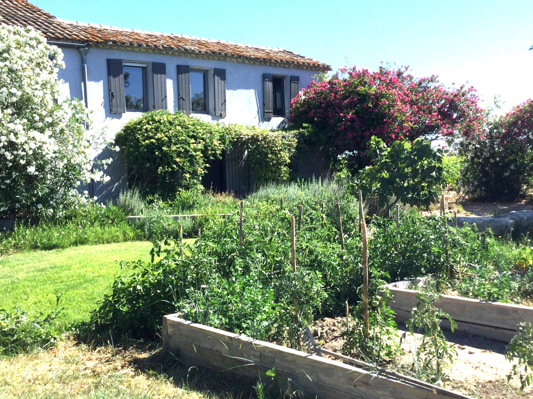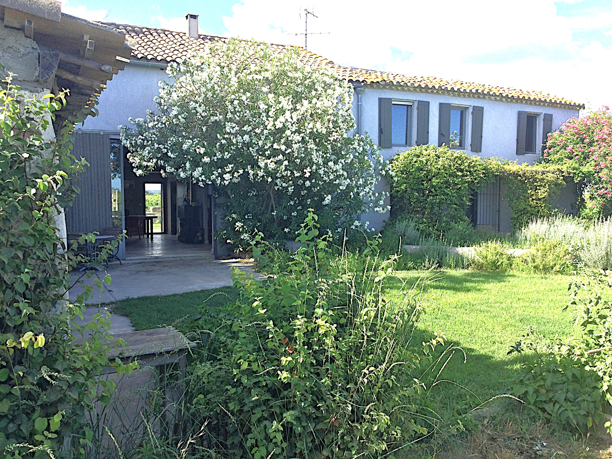 A l'EXTERIEUR, un jardin arboré et fleuri, doté d'un arrosage automatique par l'eau du Bas-Rhône, et plusieurs ESPACES DETENTE à l'avant et à l'arrière du mas, qui promettent de beaux moments de convivialité...