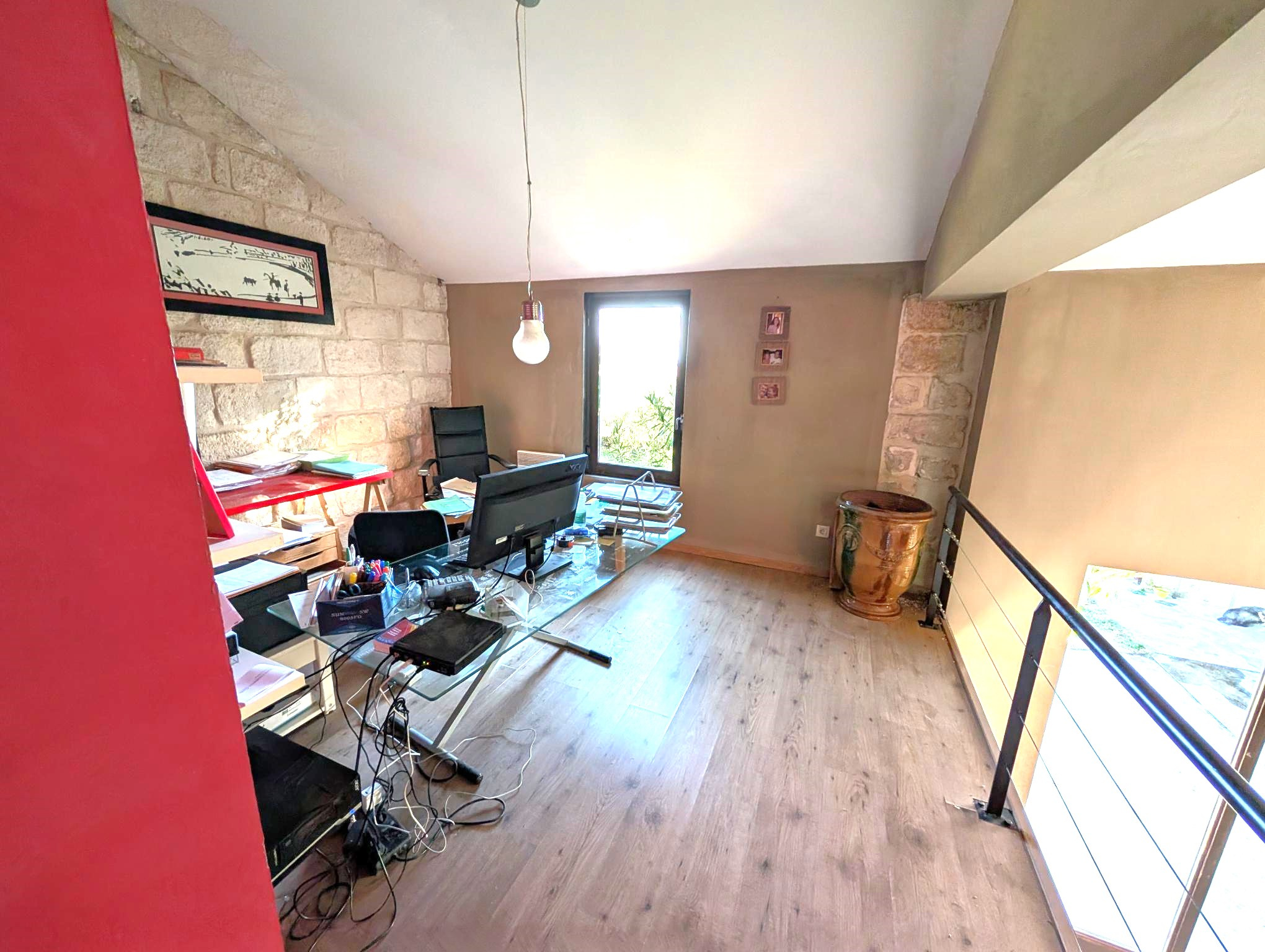 A l'étage, on découvre 3 belles chambres dont une avec salle d'eau privative, une grande salle de bain, ainsi qu'une mezzanine pouvant servir de 5ème chambre ou de bureau.